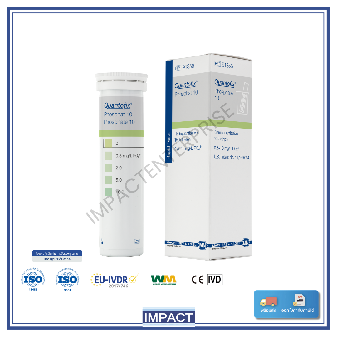 กระดาษทดสอบฟอสเฟต QUANTOFIX Phosphate test strip จาก Macherey-Nagel ประเทศเยอรมนี เป็นแถบทดสอบแบบ กึ่งเชิงปริมาณ (semi-quantitative test strip) สำหรับการตรวจวัดฟอสเฟตแบบออร์โธ (ortho-phosphate) ในน้ำ เหมาะอย่างยิ่งสำหรับงานที่ต้องการผลรวดเร็วและใช้งานง่ายโดยตรง ณ จุดตรวจ (on-site) โดยไม่ต้องบำรุงรักษาหรือสอบเทียบเครื่องมือใด ๆ เพิ่มเติม